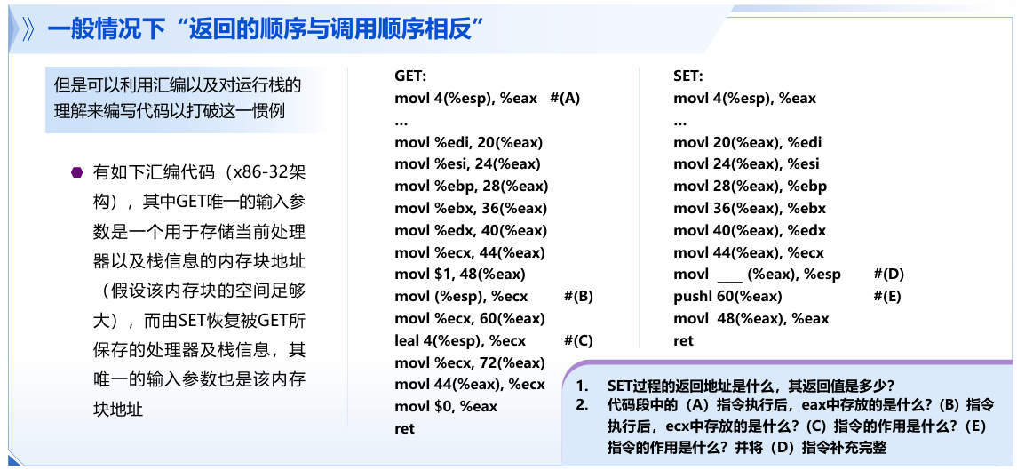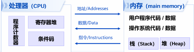 - PC(程序计数器):指向当前执行的指令(执行完后更新为下一条要执行的指令)。在 x86-64 架构下称为 RIP。