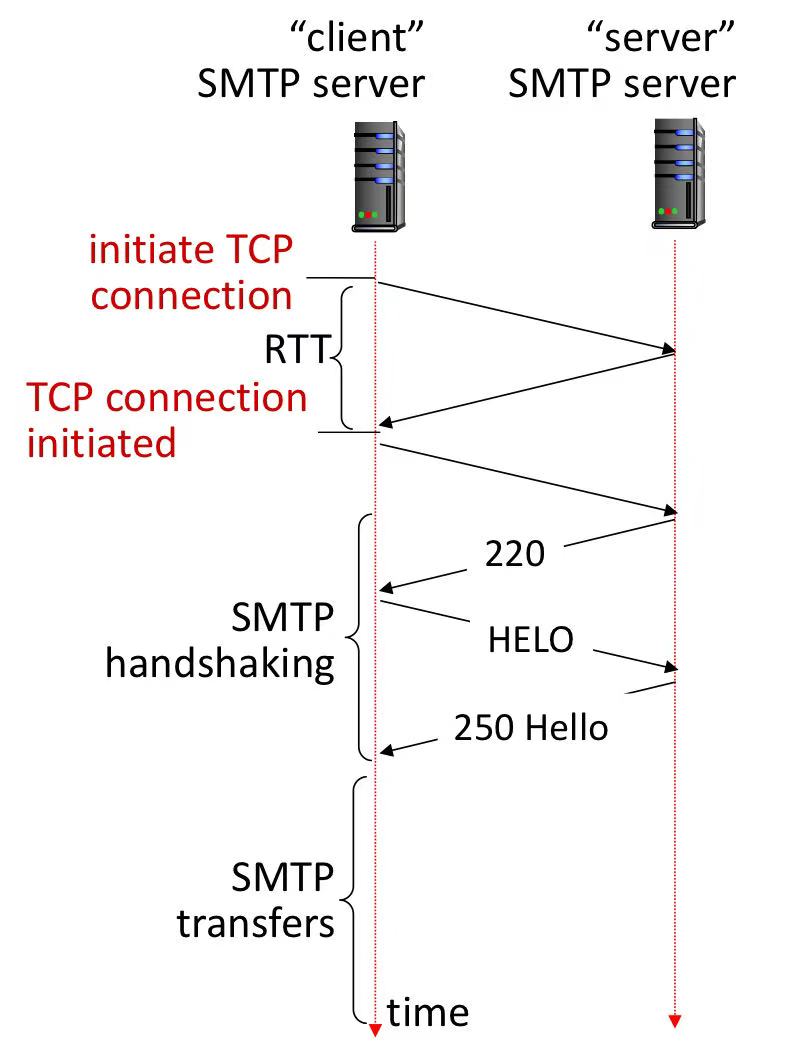 - SMTP: delivery/storage of e-mail msg to receiver’s server