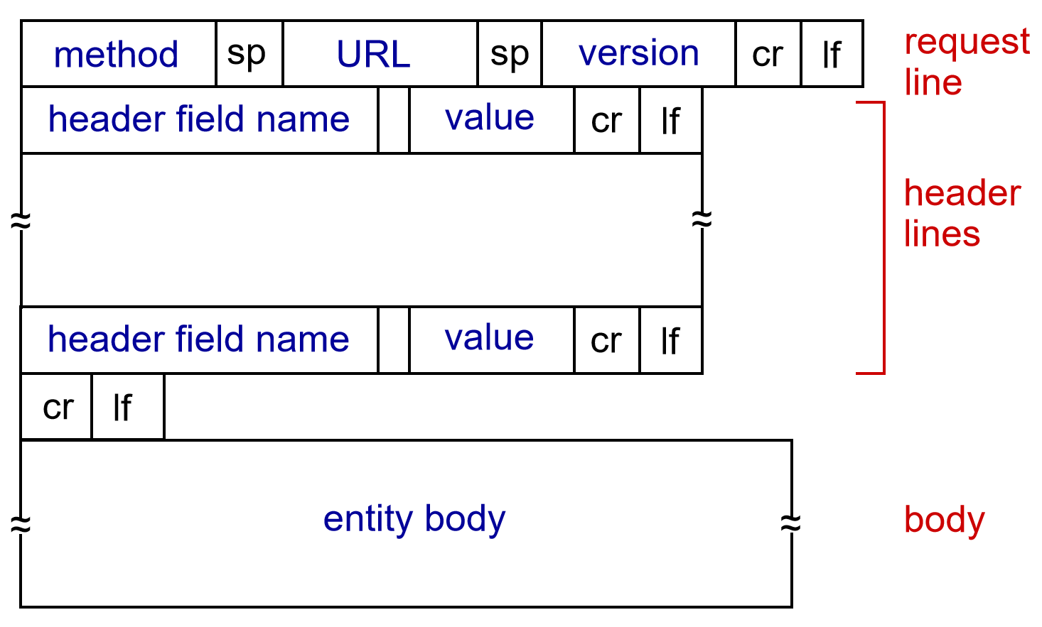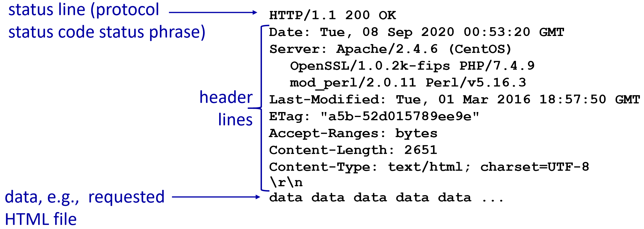 Header Lines: provide additional information in HTTP messages. request headers may include User-agent, Accept-language… response: Date, Server, Last-Modified, Content-Length, and Content-Type…