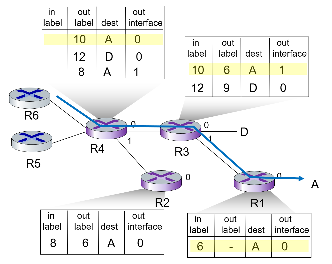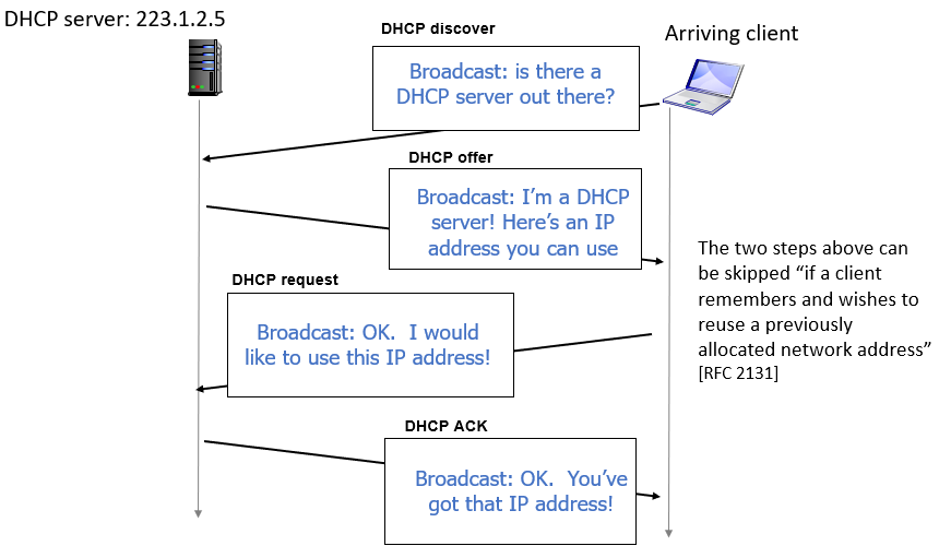 - A knows B’s IP address (maybe by DNS); IP address of first hop router R and R’s MAC address (DHCP).