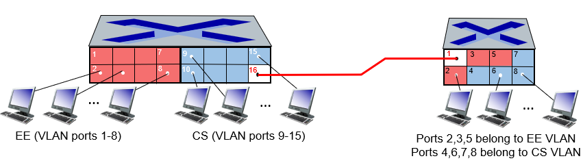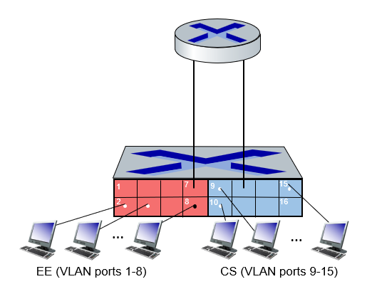 - traffic isolation: frames to/from ports 1-8 can only reach ports 1-8