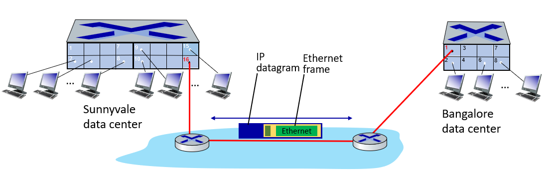 - Ethernet switched logically connected to each other (e.g., using IP as an underlay)