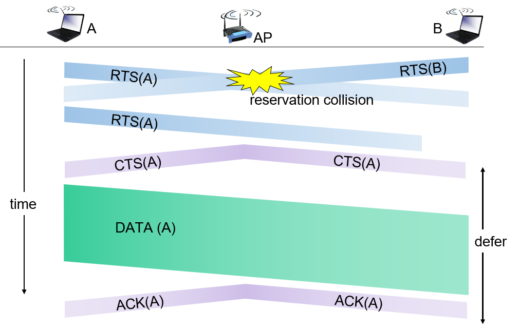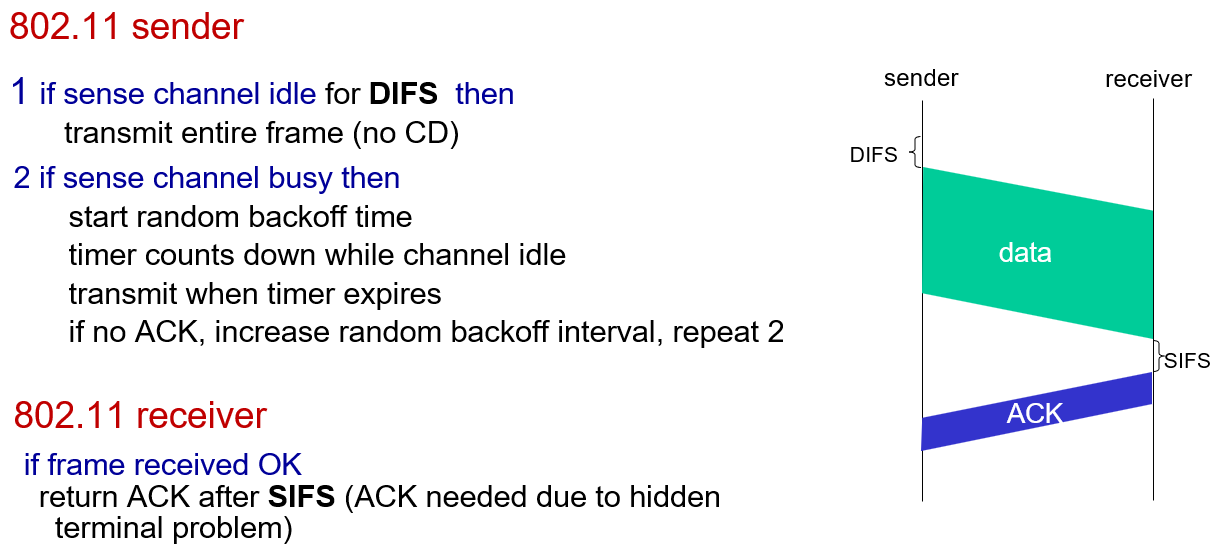 - solution: RTS-CTS-DATA-ACK (CSMA/CA)
